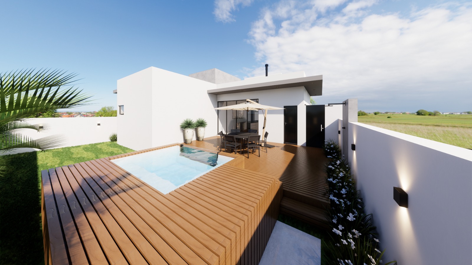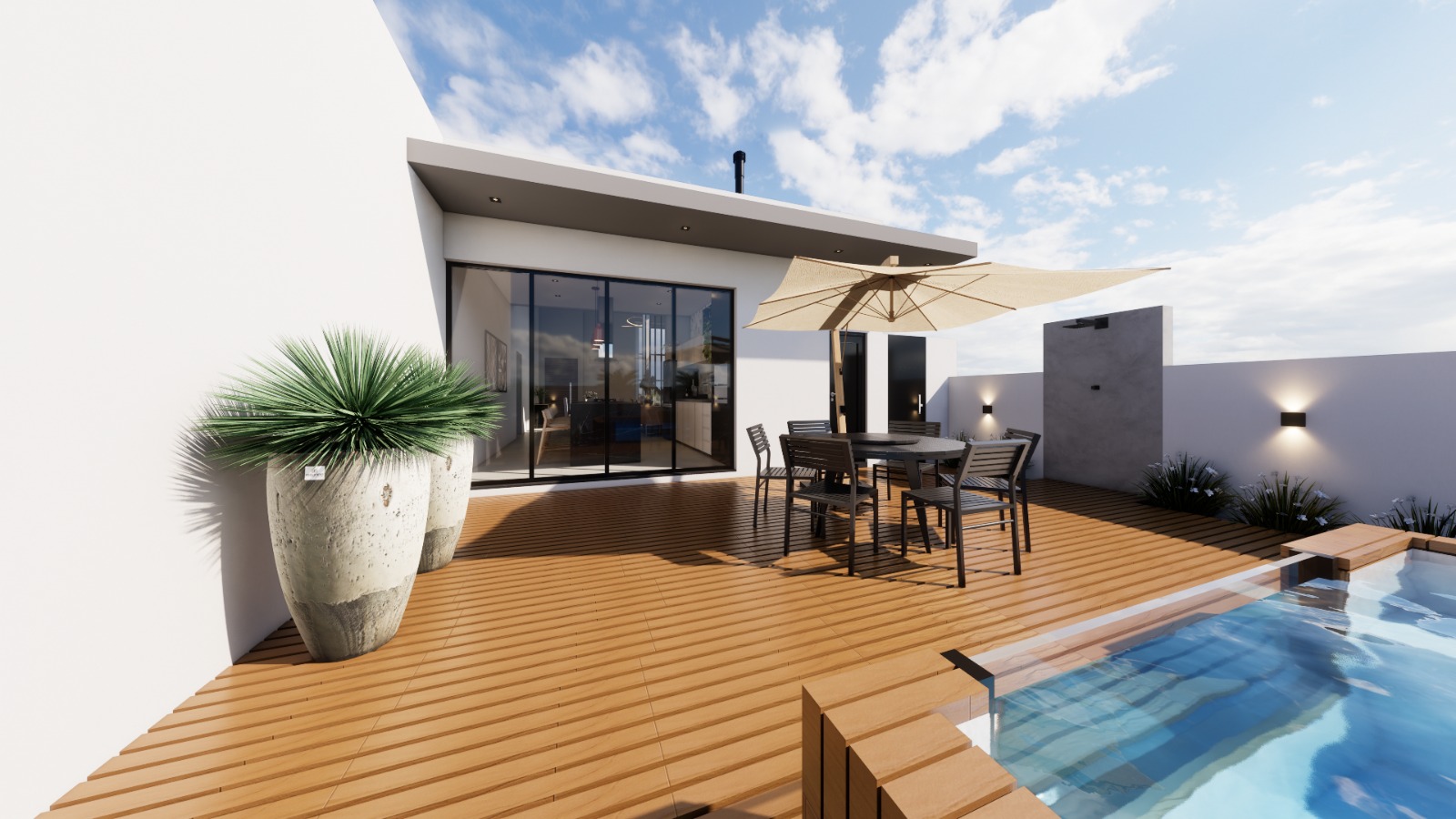 • Deck em porcelanato amadeirado